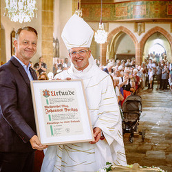 Dabei wurde sein Geschenk an die Pfarre, die Johannesglocke geweiht.