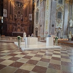 Um 12:00 Uhr feierten die Bus- und Fußwallfahrer gemeinsam die Hl. Messe in der Basilika zur Heiligsten Dreifaltigkeit in Sonntagberg. Anschließend kehrten alle zum Mittagessen im Gasthof Lagler ein.